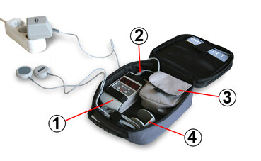 - Pokrowiec ochronny na wibrofony (4) także umieszczany jest w torbie. Przechowywanie i wyjmowanie z niego wibrofonów jest bardzo proste.